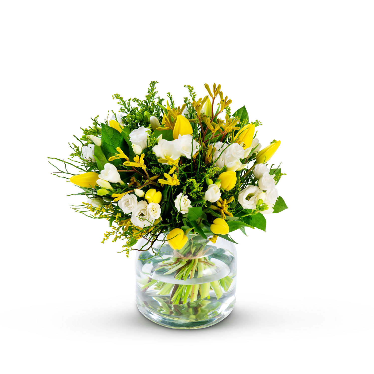 Celebrate Easter with this radiant bouquet in yellow and white, a fresh and elegant combination that perfectly suits spring. The sunny yellow hues instantly bring warmth and cheer into your home, whilst the white flowers lend a soft and refined look.