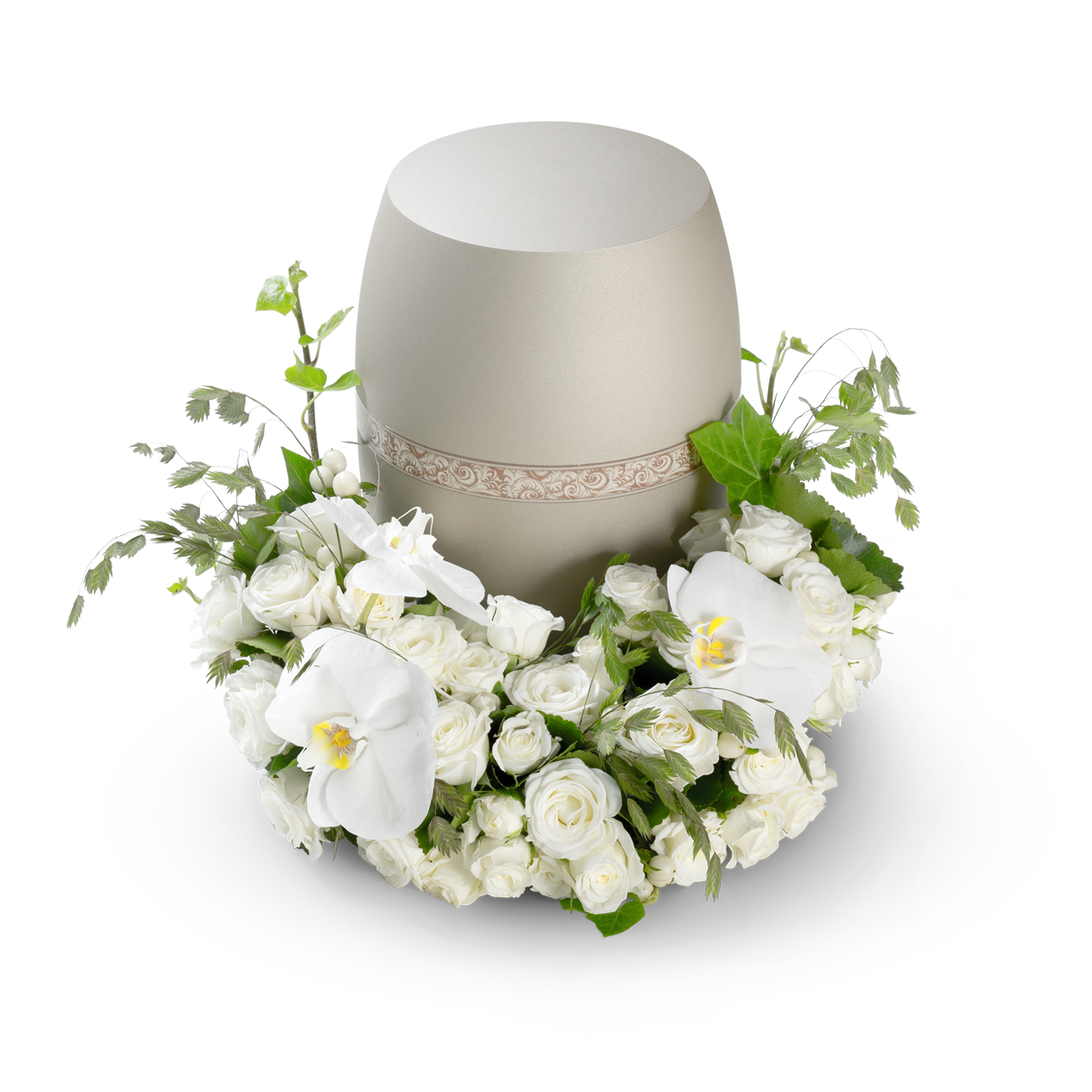 A refined and timeless floral arrangement that serves as a peaceful and dignified tribute, both during the ceremony and as a lasting memorial.