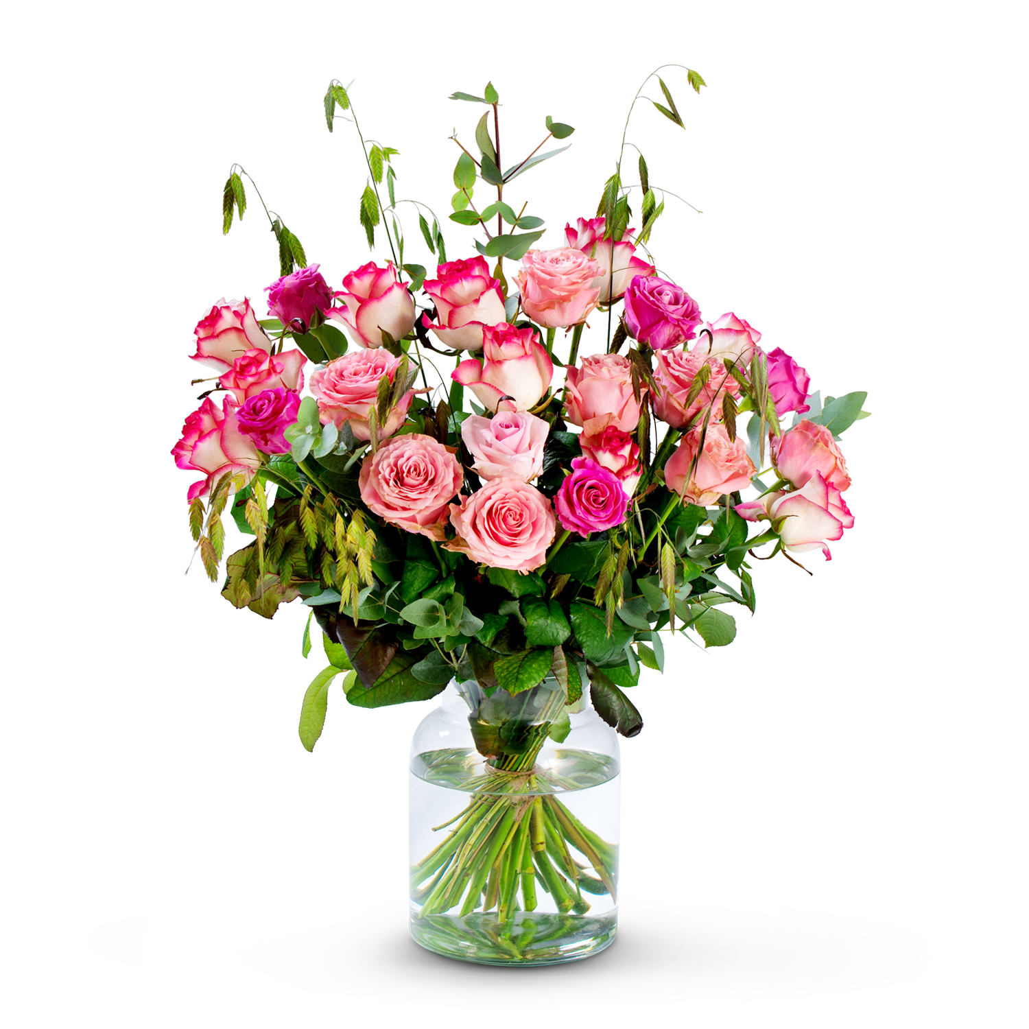 Vous recherchez un bouquet de roses roses élégant ? Ce bouquet de roses sauvages associe différentes variétés de roses roses, allant du rose pâle au rose intense, ce qui lui confère une profondeur et un caractère supplémentaires. Des feuillages ludiques qui dépassent subtilement du bouquet lui donnent un aspect décontracté et naturel. Grâce à sa composition aérienne et à la riche variété de roses, ce bouquet est un cadeau plein d'amour et de chaleur. Vase non compris.
