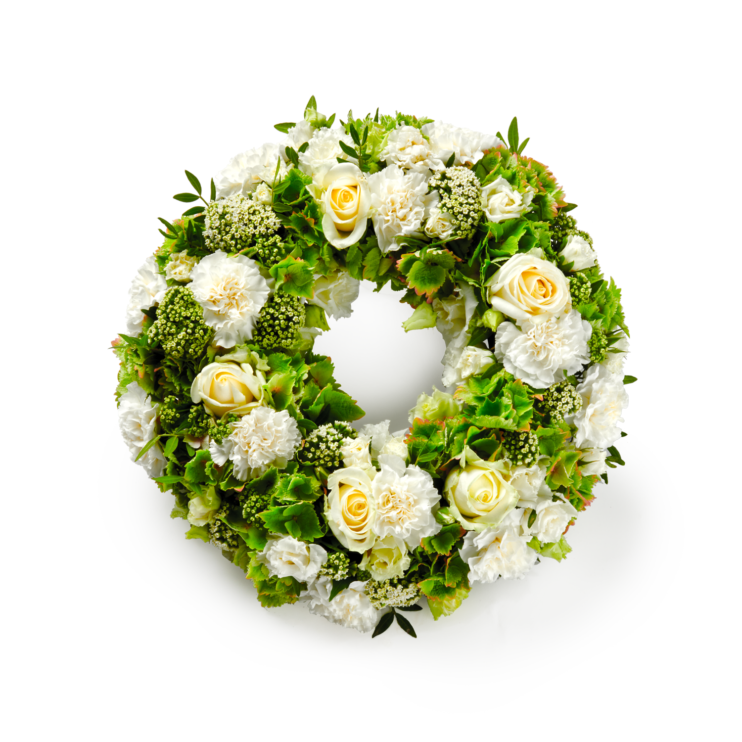 Exprimez vos plus sincères condoléances avec cette couronne funéraire blanche et sereine pour un adieu affectueux et modeste