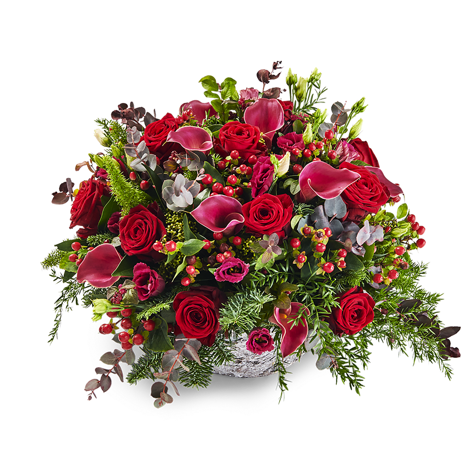 Dit red bloemstuk in de biedermeier vorm, is een ware streling voor het oog. Door zijn mooie rode kleuren is het een ideaal geschenk voor elke gelegenheid.