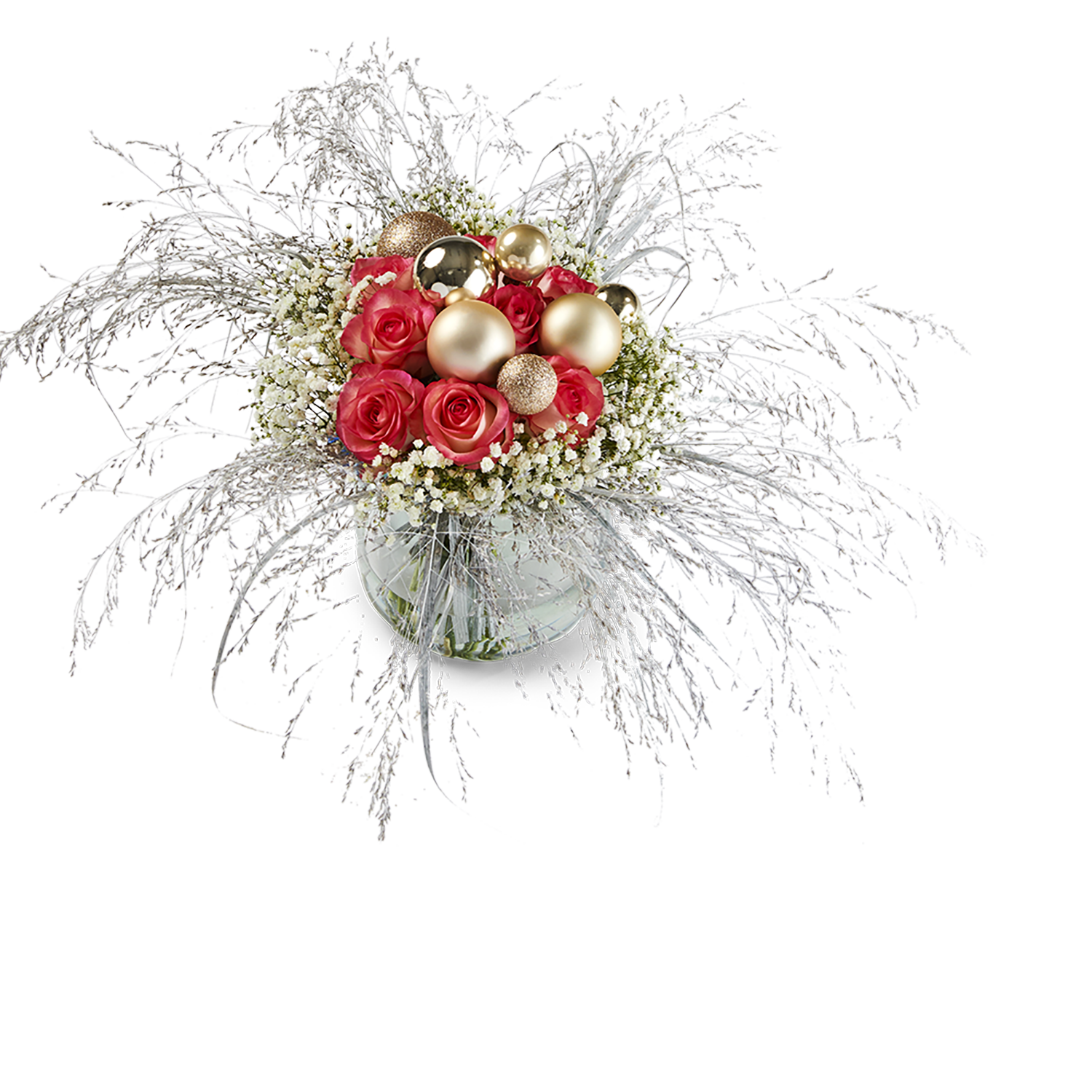 Geen klassiek red deze Kerst? Met dit pink kerstboeket tover je onmiddellijk heel wat frivoliteit op tafel.