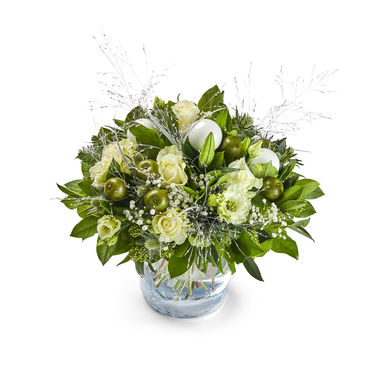 Elegant wit Kerstboeket om de eindejaarsperiode optimaal te vieren. Door het gebruik van lelies baadt het hele huis ook in bloemengeur.