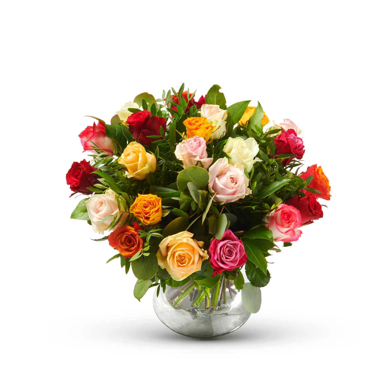 Dit kleurrijk boeket met gemengde rozen wordt door iedereen gesmaakt door zijn eenvoud en brengt onmiddellijk kleur in huis!