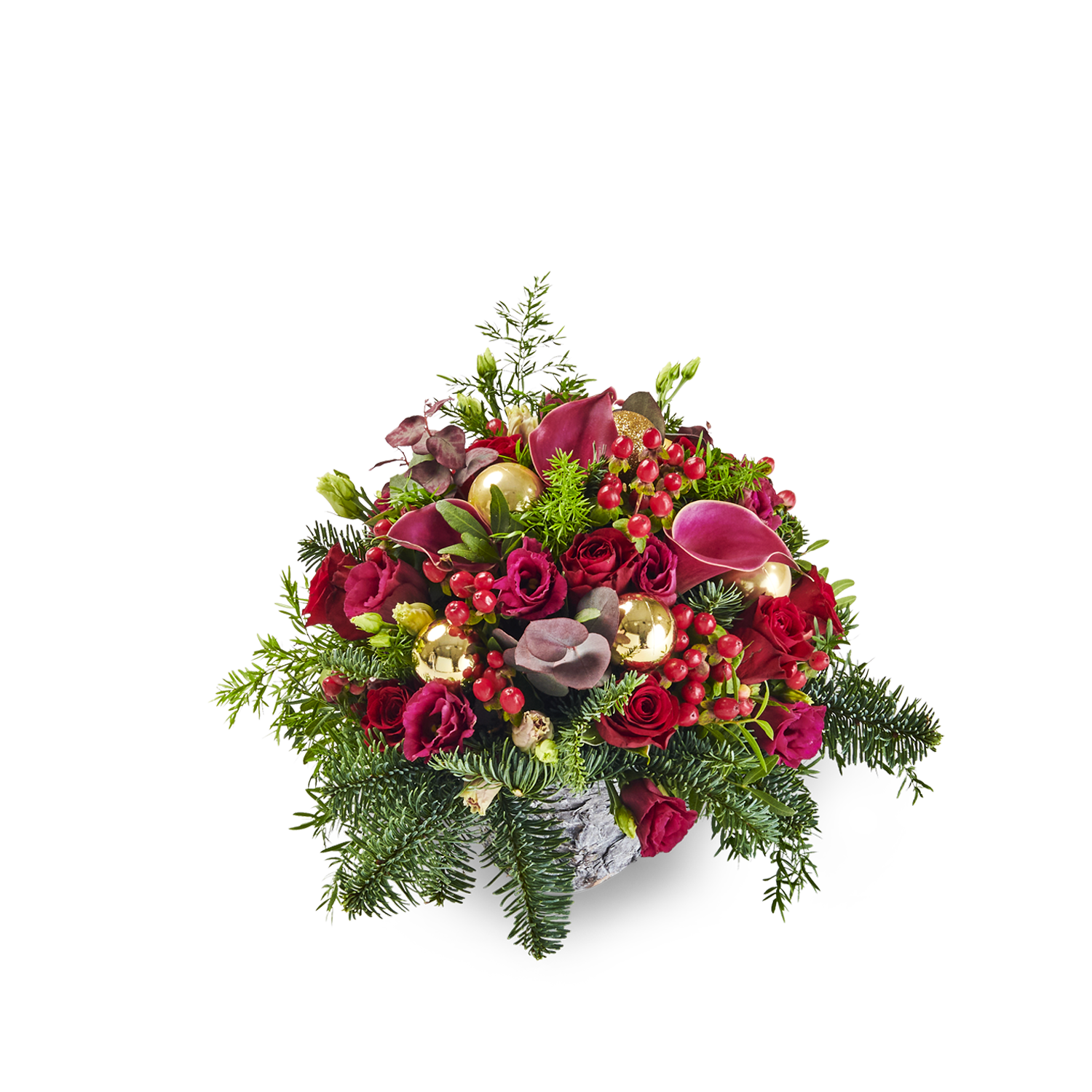 Rood Kerstbloemstuk Dit rood Kerstbloemstuk met gouden accenten is een prima geschenk voor jong en oud. Door de selectie van bloemen zal dit stuk op meerdere feestjes de show stelen.