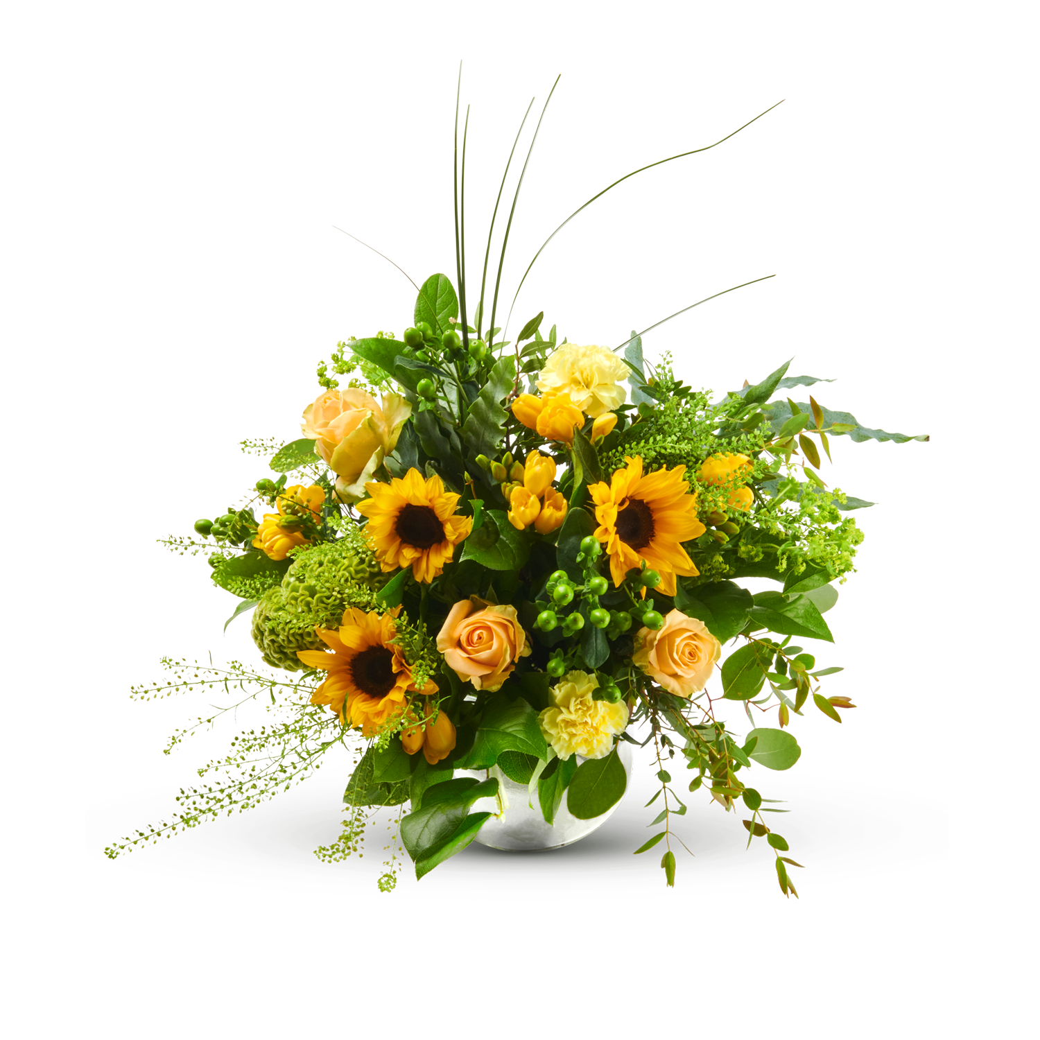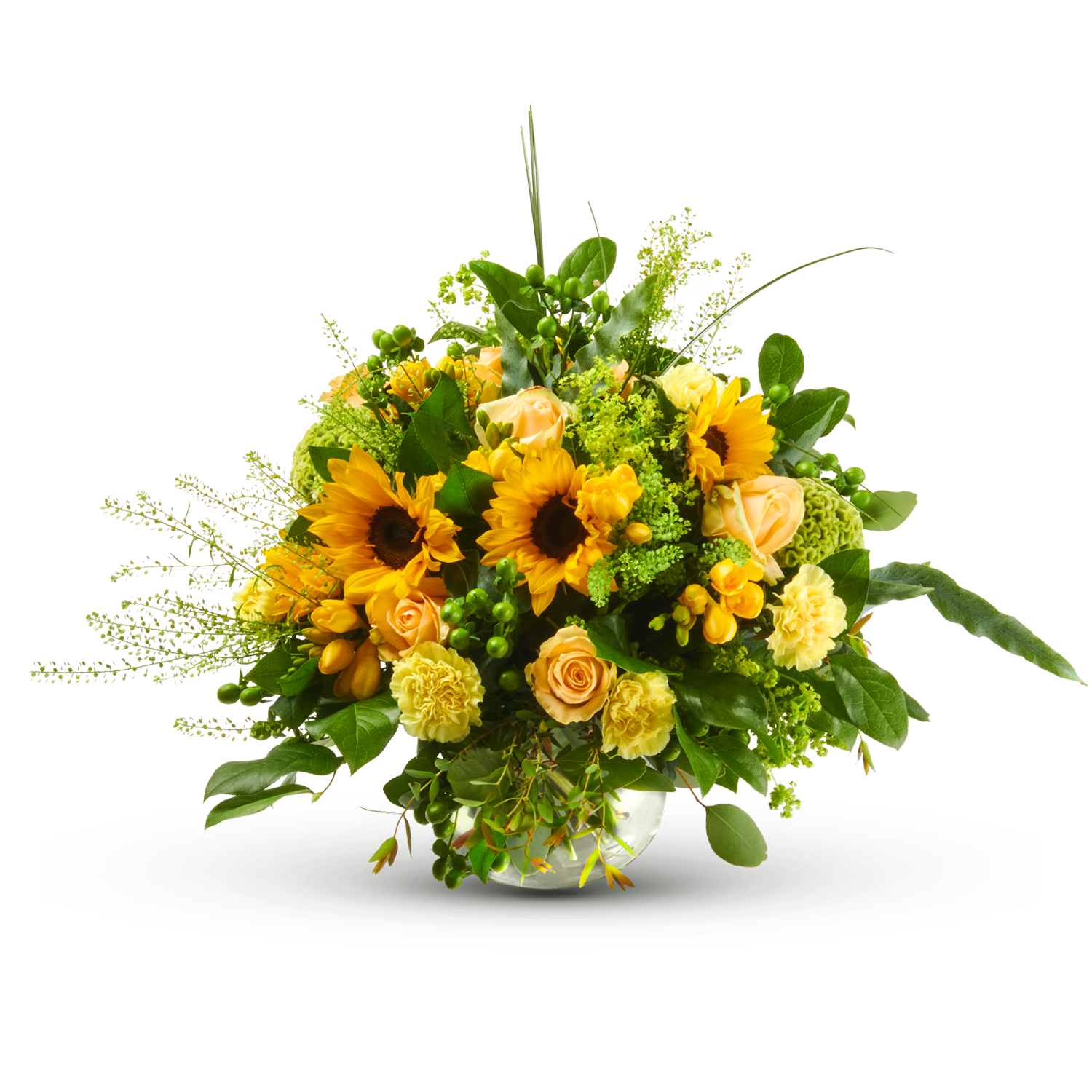 Als je aan de zomer denkt, denk je aan zonnebloemen! Laat daarom dit energiek boeket leveren en laat de zomer in iemands huis.